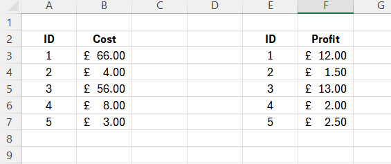 This is probably the easiest type to conceptualise. Suppose we have two tables within our data model and have an 'ID' column in both. If each row is a unique ID and both tables contain the same ID values then we can join these tables via a one to one relationship. In other words every unique ID will match with itself exactly once. See figure 1 below: