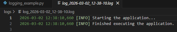After pasting that script into the logging_example.py file, you can try running it by typing in the terminal (where you already activated the virtual environment):