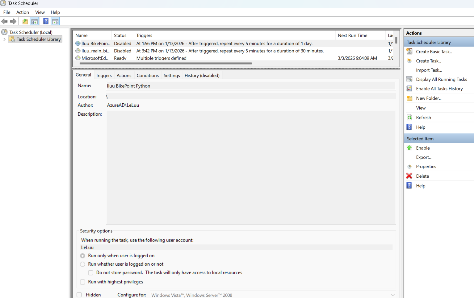 In the Task Scheduler window, you can also check the last run, the next run, the status of the last run as well.