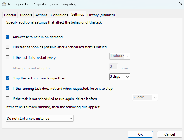 Any errors could happen if the task runs longer than 1 hour. So, I checked the box "Stop task if it runs longer than: 1 hour". Finally, check the box "Enabled" to enable this task to run. You can uncheck this box if you don't want this task to run anymore.