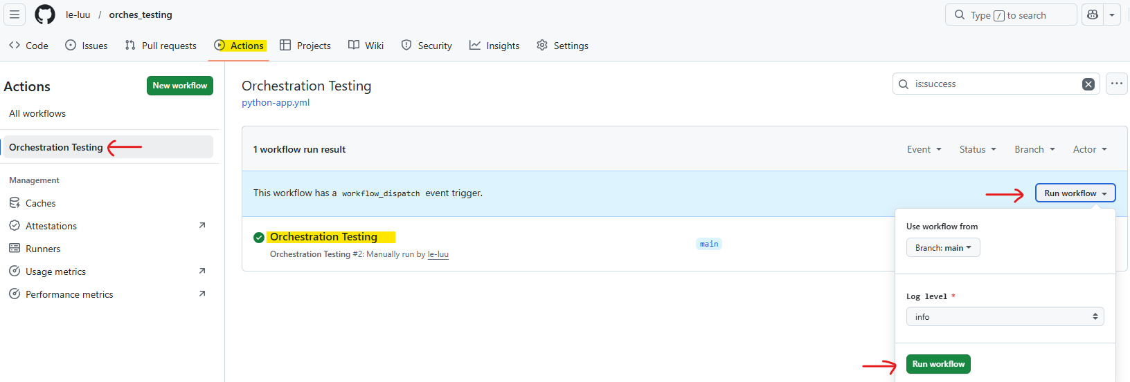 Let's start with the name. You can set any name for the workflow there. By default, it put Python application there. So I changed it to Orchestration Testing.