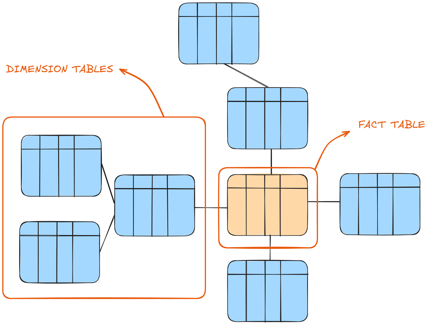In week 1 of training, we covered the concept of snowflake schemas to represent the logical connections between data tables. The following are thoughts I have compiled on how to better remember the different components of the snowflake schema: