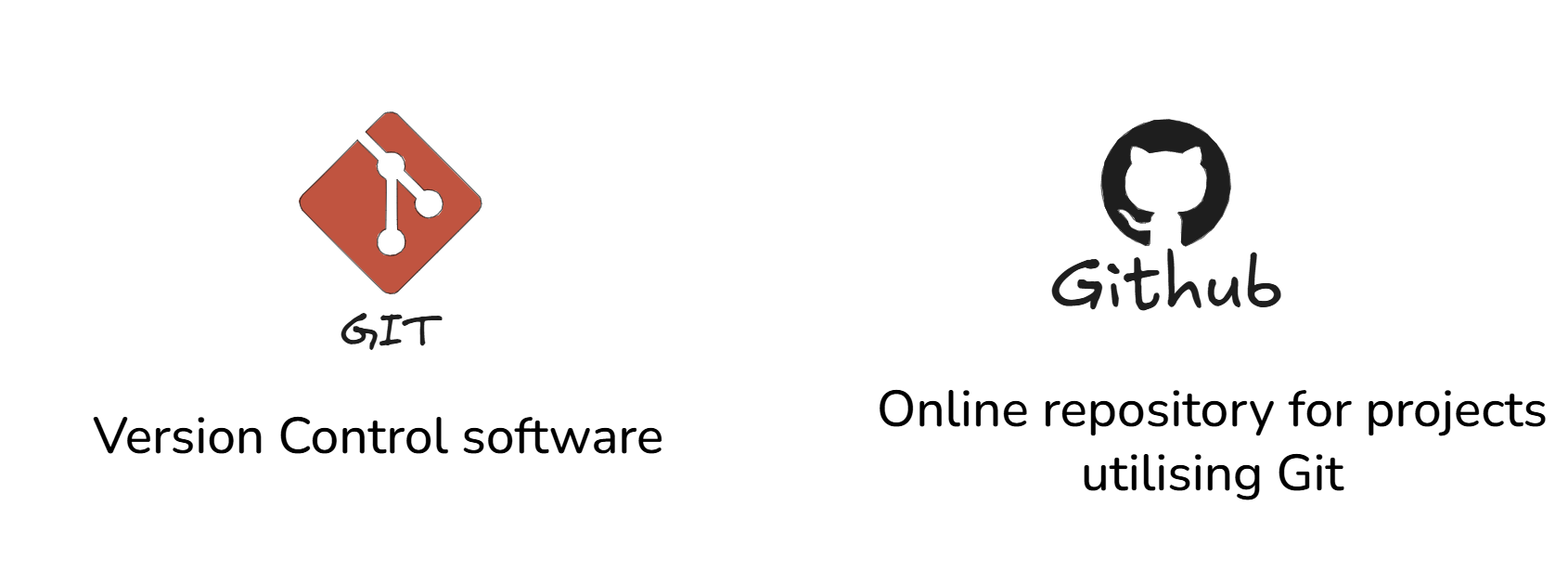 As shown in the following figure below, there is a key distinction between Git and GitHub. Git is the principle of version control mentioned earlier being an open-source software that lets you track changes within your code. GitHub, on the other hand, is the cloud-based hosting platform for your projects that allows collaboration with other developers.