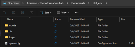 Give it a minute to execute the command. This will create a folder named dbt_env that contains the virtual environment.