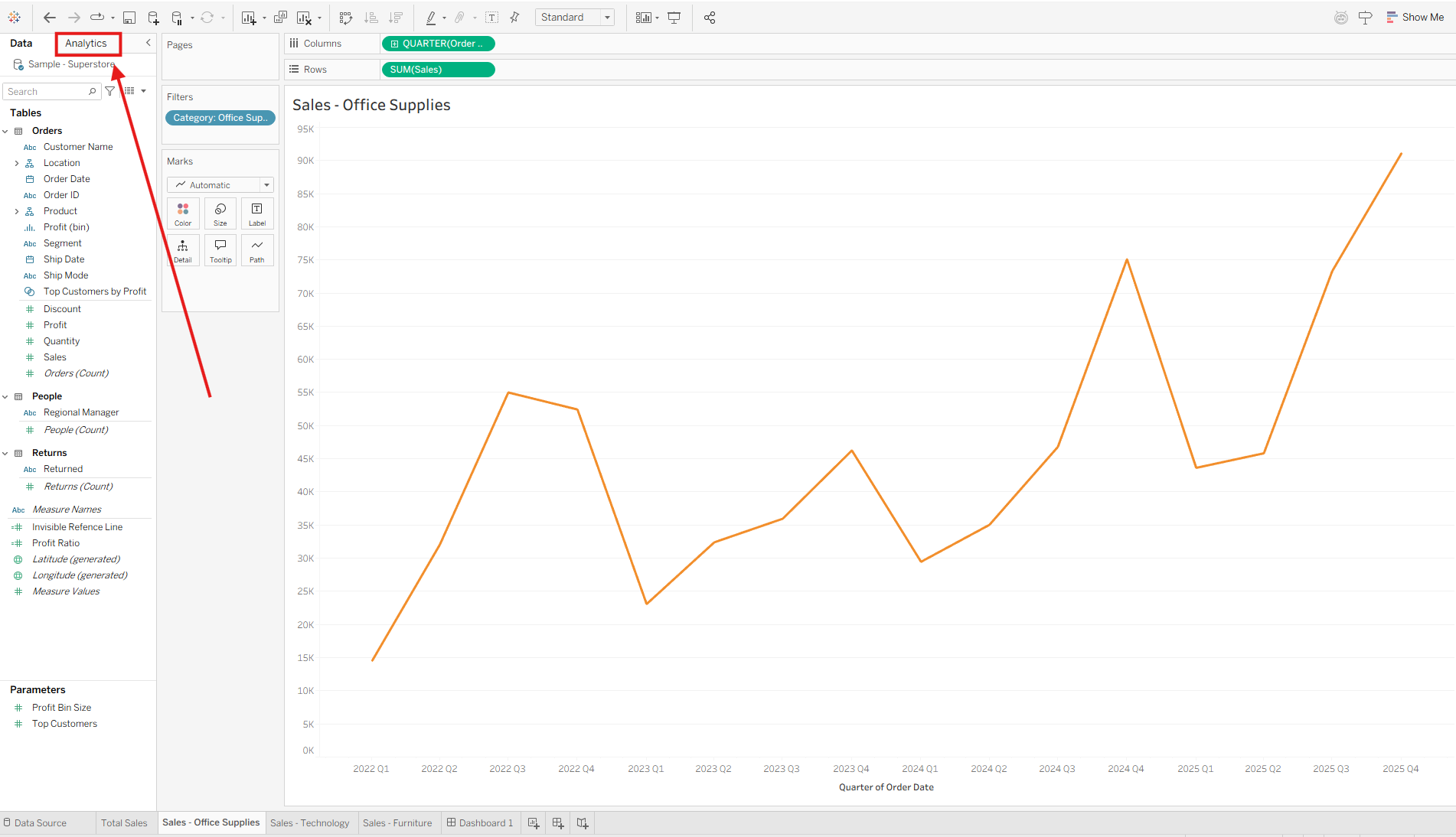 Open the Analytics pane.