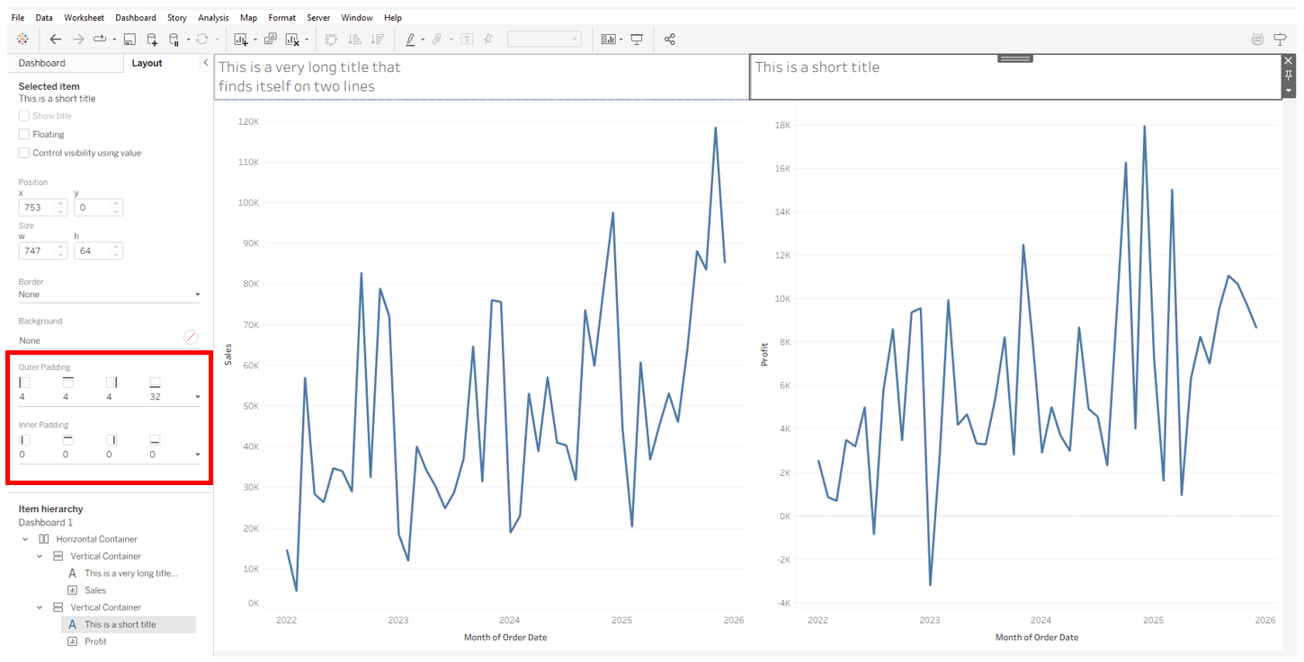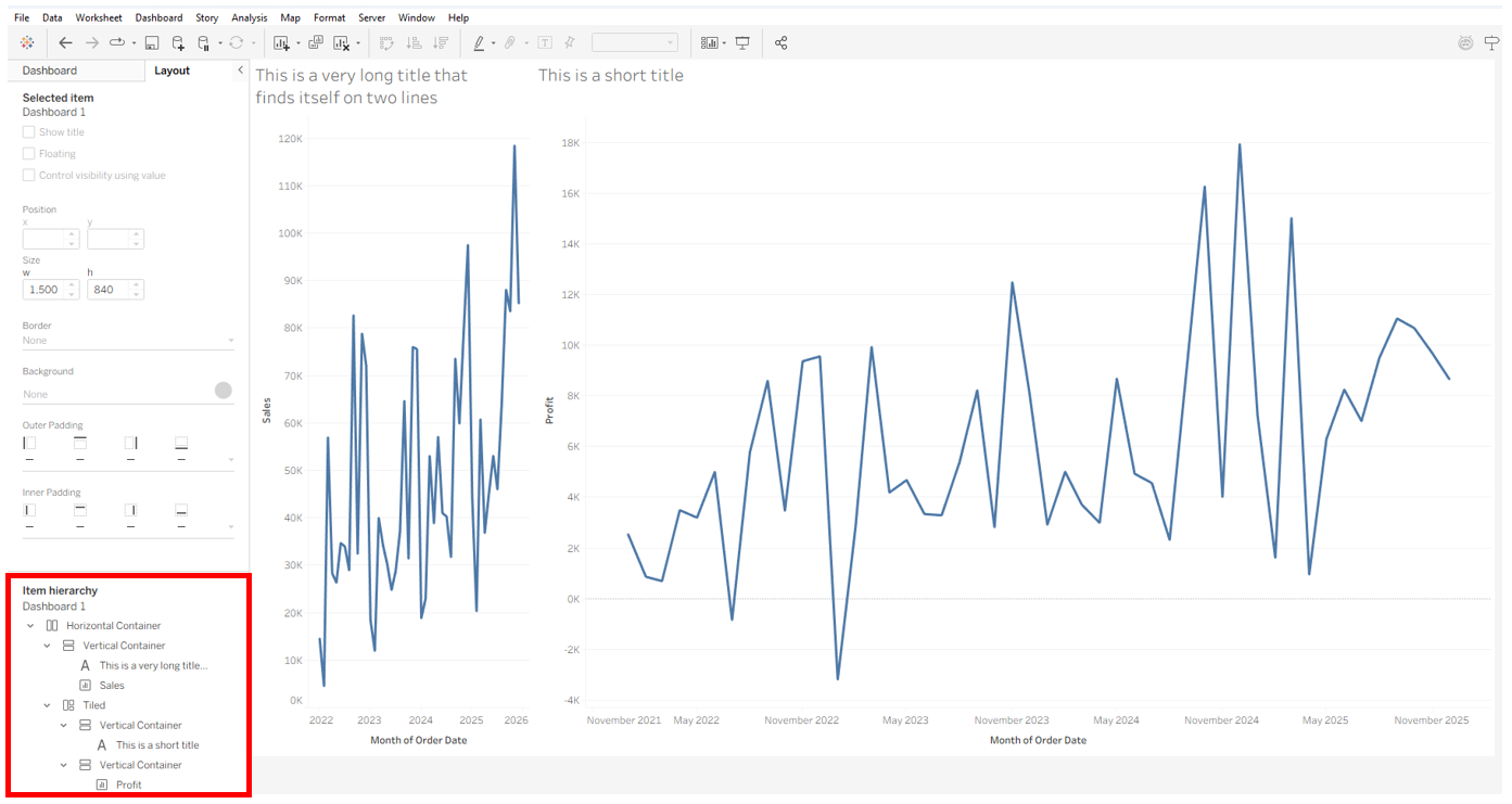 If you notice this happening right away, the easiest fix is to delete everything and start fresh using the setup steps from my previous blog. The key is to float your first container before dropping anything in. Doing this prevents Tableau from automatically building an unnecessary hierarchy for most of your containers.