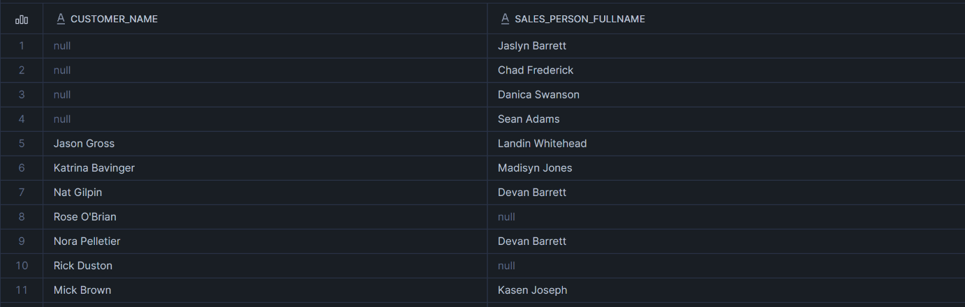 FULL JOIN customer_sales_rep csr