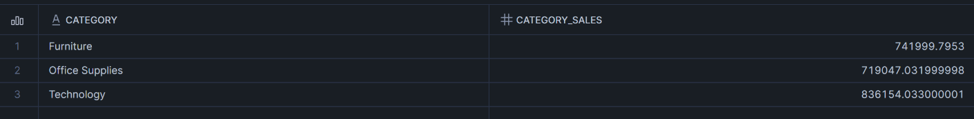 ,SUM(sales) AS category_sales
