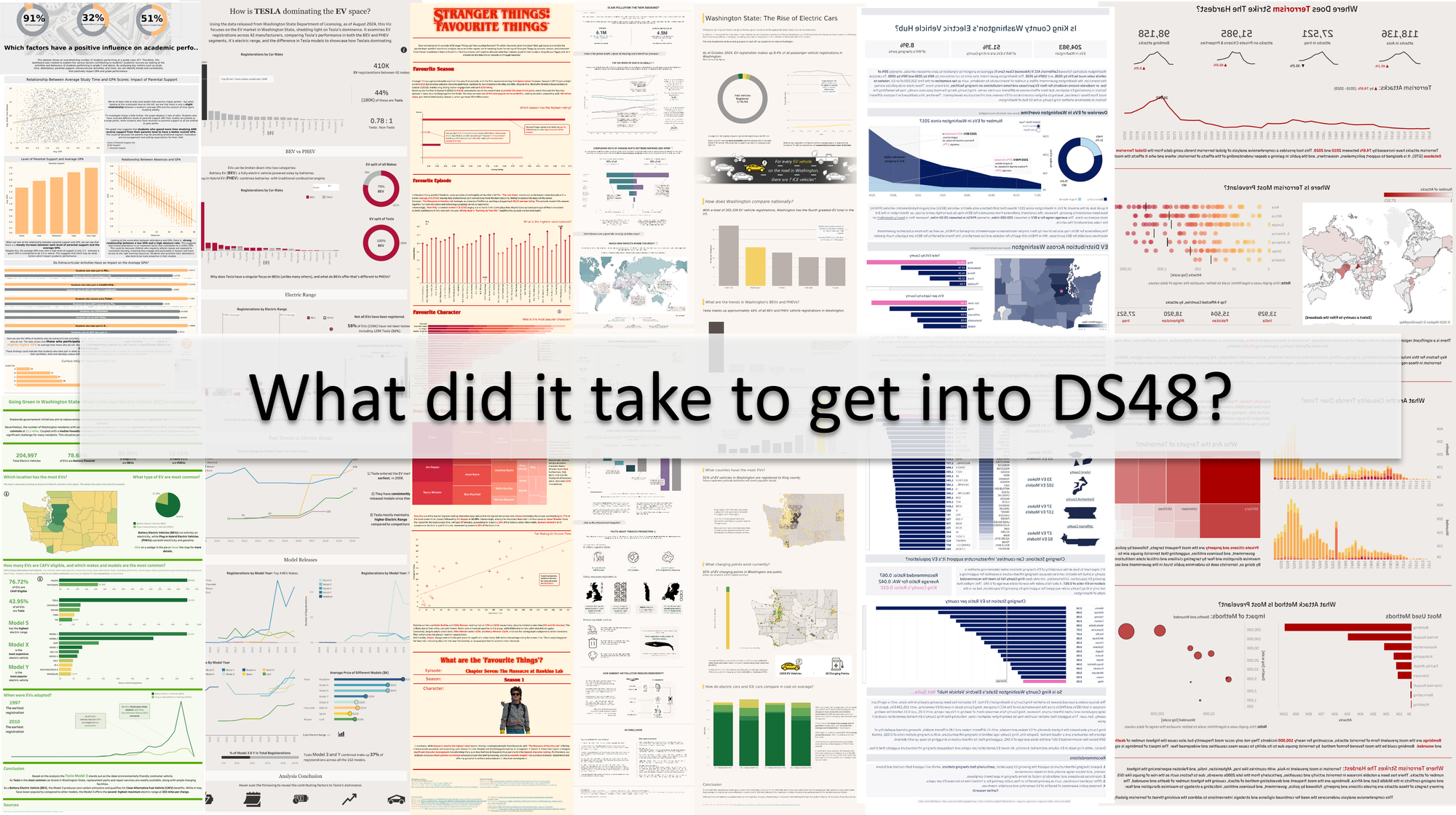 To get into DS30, the team worked with data about either fish counts in the UK or restaurant inspections in New York. They all went with a long-form storytelling type of viz. Have a look for inspiration for your own application.