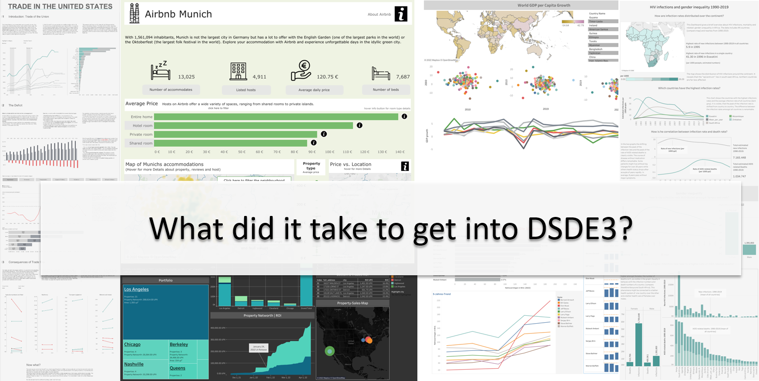 I'm really pleased to present to you our 7th Cohort of learners at The Data School here in Germany, this time we have 7 new bright brains to introduce to you. Below are two images per person, the first of which is their initial application, the second of which is their final interview application. Please feel free to click the images and explore the visualisations, or click through to our consultants' profile pages. If you think you've got what it takes to join us, do get in touch! We are hap
