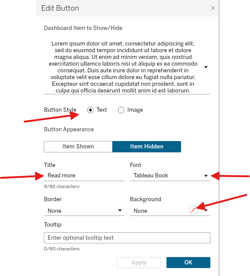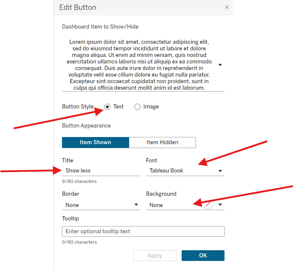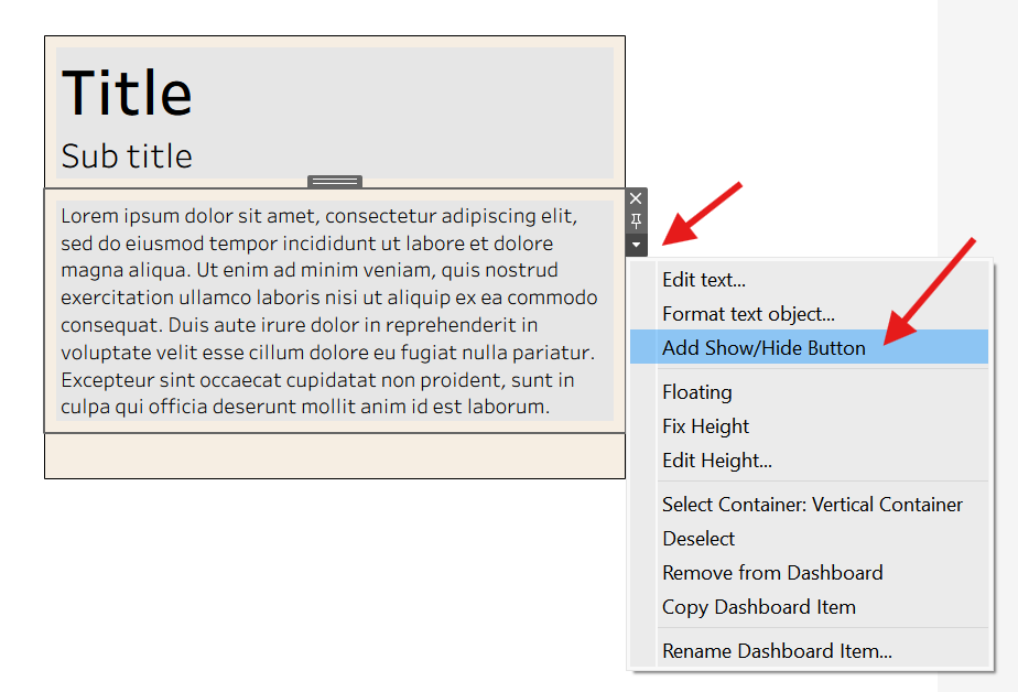 Step 4: Select the text box you want to hide, then click on "Add Show/Hide Button"