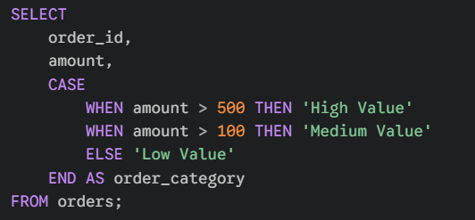 SQL isn't just for fetching data; it can also create new data on the fly. The CASE WHEN statement allows you to perform "If/Then" logic directly in your query to categorise or label your rows.