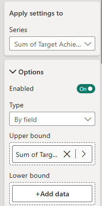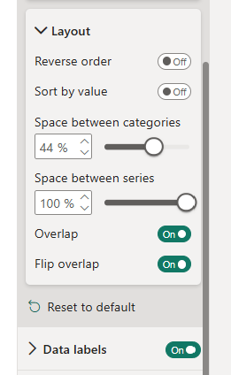 - Space between series (set to 100%) Pushes the bars in each category fully on top of each other. → This is key to making the bars look like a single progress bar instead of side-by-side bars.