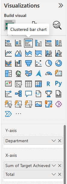 - Drag your categories into the Y-axis (in my example the field name is Department)